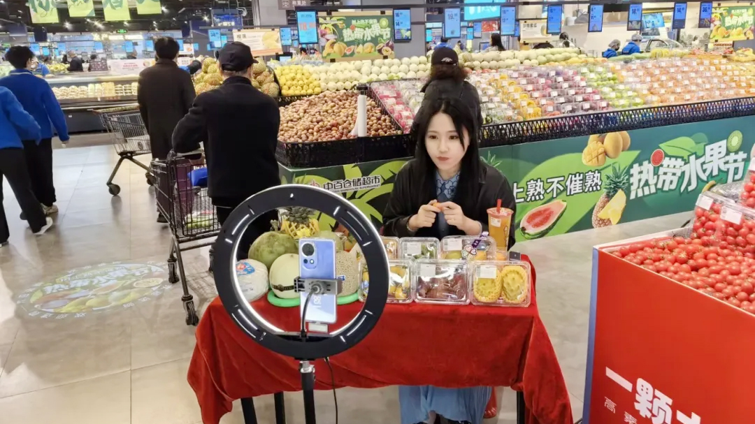 走进中百仓储超市门店水果区,椰树剪影与沙滩元素装点的“树上熟不催熟-热带水果节”主题陈列令人眼前一亮,金灿灿的芒果与玫红色的火龙果构成视觉盛宴。同时,线上渠道同步发力,积极开展专场直播活动,领券下单、满额优惠的活动形式,吸引众多网友围观。直播间里主播现场切开黄金燕窝果,晶莹果肉引得观众频频点赞。