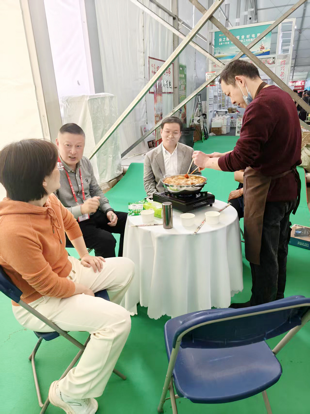 为了让前来观展的客商能够更直观的感受到中百生鲜的“鲜滋味、好品质、新产品”,生鲜公司现场架起火锅、蒸锅,新鲜的豆制品投入沸腾的锅中现煮现吃,软嫩筋道、鲜香味美;现蒸的药膳馒头、现制的鲜食热干面,搭配温热醇厚的药膳豆乳,供客商免费试吃品鉴,通过让好产品自己“说话”方式,展示中百鲜食的品质与诚意。